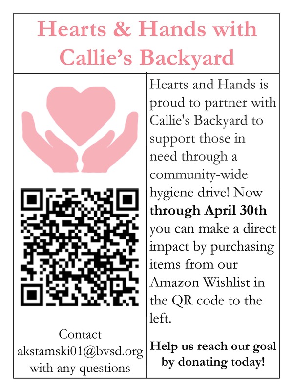 This year, a group of high school students partnered with Hearts and Hands to support Callie’s Backyard Foundation through a meaningful, student led initiative. The group is gathering hygiene products and essential items to create care kits that will be distributed on the streets of Denver. These kits directly support youth facing homelessness, trafficking, and substance abuse.